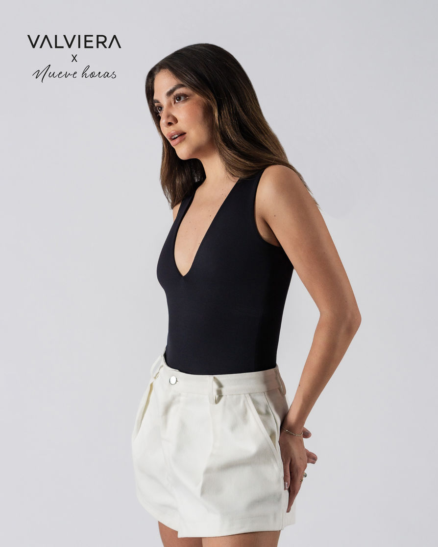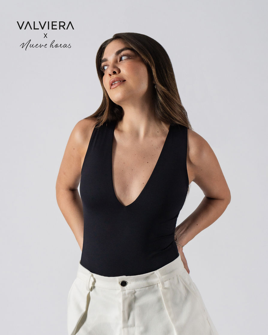 Body escote en V semi profundo, manga cero con forro interior delantero completo. Con 2 broches en tono negro. De silueta perfecta, stretchy. Prenda de alta calidad confeccionada en lycra brasilera. Propiedades: