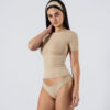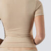 Camiseta cuello redondo, manga corta con forro interior hasta debajo del busto. De silueta perfecta, stretchy. Prenda de alta calidad confeccionada en lycra brasilera. Propiedades: