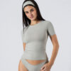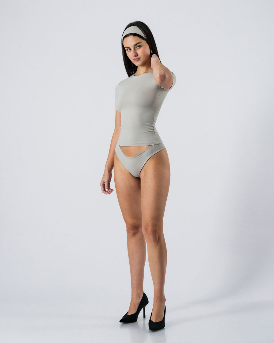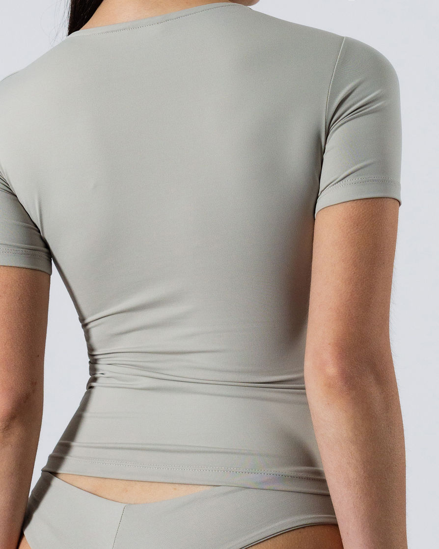Camiseta cuello redondo, manga corta con forro interior delantero completo. De silueta perfecta, stretchy. Prenda de alta calidad confeccionada en lycra brasilera. Propiedades: